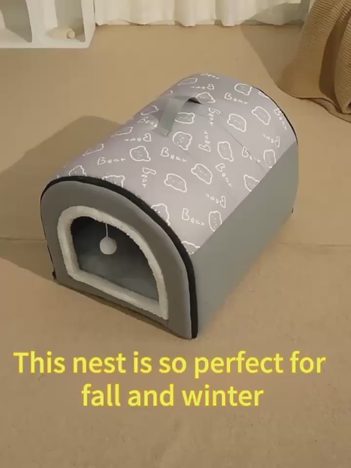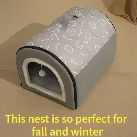 ¿Buscas un lugar donde tu perro o gato pueda relajarse y sentirse totalmente seguro? La casita "Cozy Nest" es la respuesta. Con su diseño tipo cueva y su cojín mullido, es el refugio perfecto para que tu mascota se acurruque y descanse plácidamente. Además, su material suave y sus paredes acolchadas le brindan la privacidad que necesitan para sus siestas más profundas.