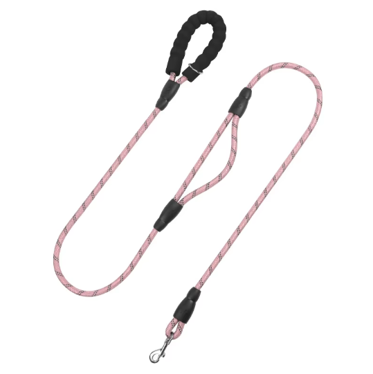 Esta correa no solo es fuerte, también es increíblemente cómoda de sostener. Su manija acolchada con material suave evita las rozaduras en tu mano, incluso si tu perro se emociona y tira un poco. Además, la anilla de metal resistente permite una conexión segura al arnés. El diseño reflectante aumenta la visibilidad en las noches, brindándote tranquilidad en cualquier momento del día.