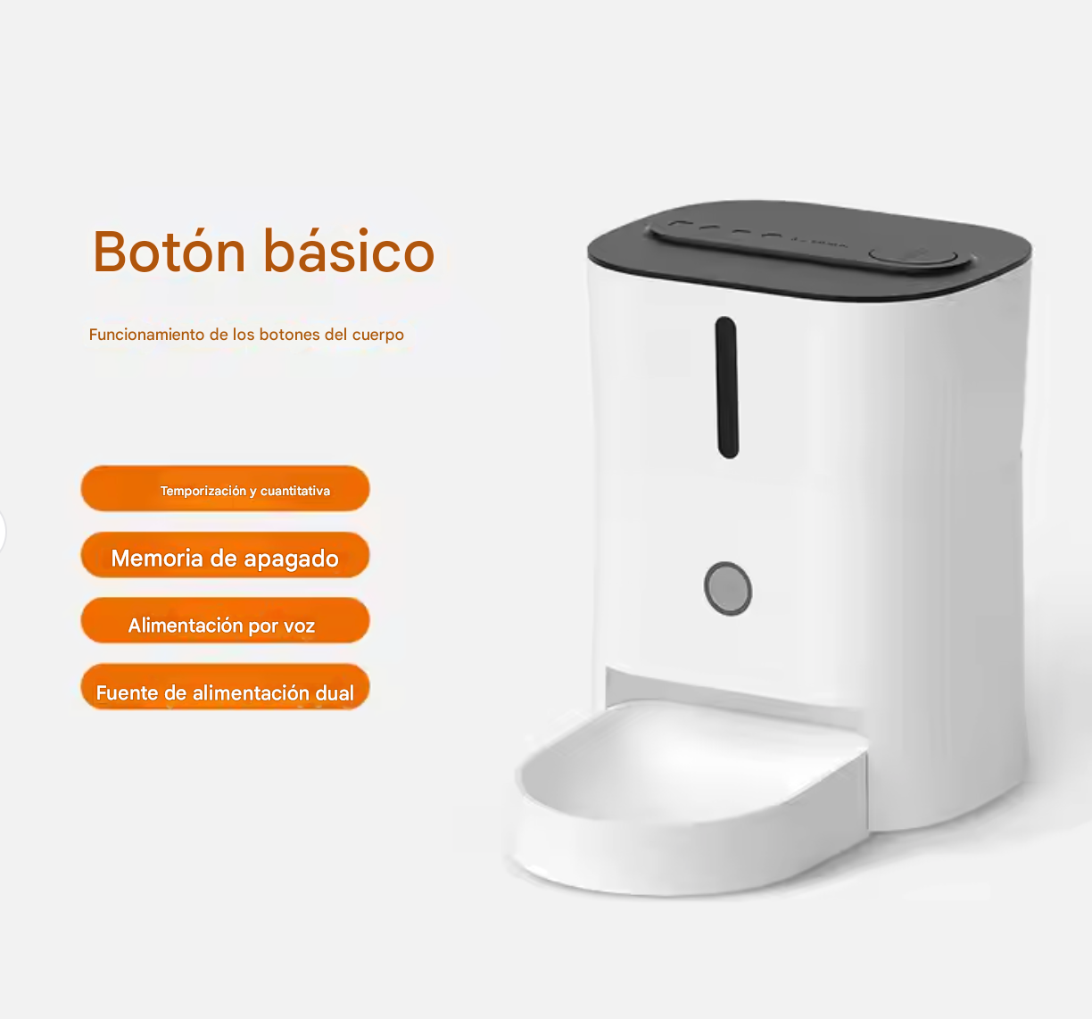 Con un diseño compacto y elegante- disponible en varios colores- este comedero automático se integra perfectamente en cualquier espacio del hogar. Además- su bandeja de alimentación extraíble facilita la limpieza y mantenimiento del dispositivo- para que puedas dedicar más tiempo a disfrutar con tu mascota.