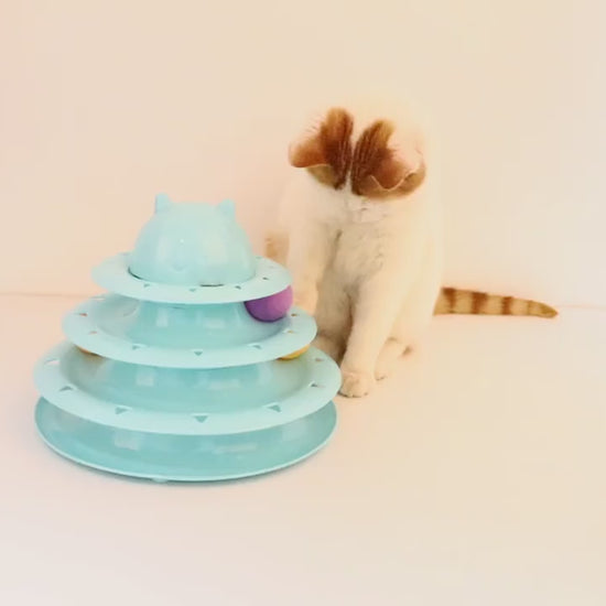 "El Juguete Interactivo ""CatTower"" está diseñado para mantener a tu gato entretenido durante horas. Con su estructura de torre de varios niveles y pelotas coloridas que ruedan a través de las pistas- este juguete estimula el instinto natural de caza de los gatos- promoviendo el ejercicio y la diversión.